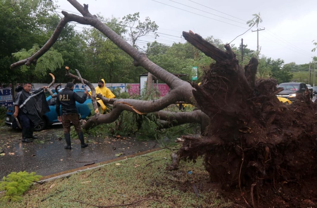 Para las tres de la tarde ya había árboles caídos en la avenida Quetzalcóatl (frente a un supermercado), en Circuito Colonias a la altura del deportivo Kukulcán, en la avenida Pedagógica, en la colonia Azcorra, los Vergeles, Ciudad Industrial, San Marcos Sustentable…