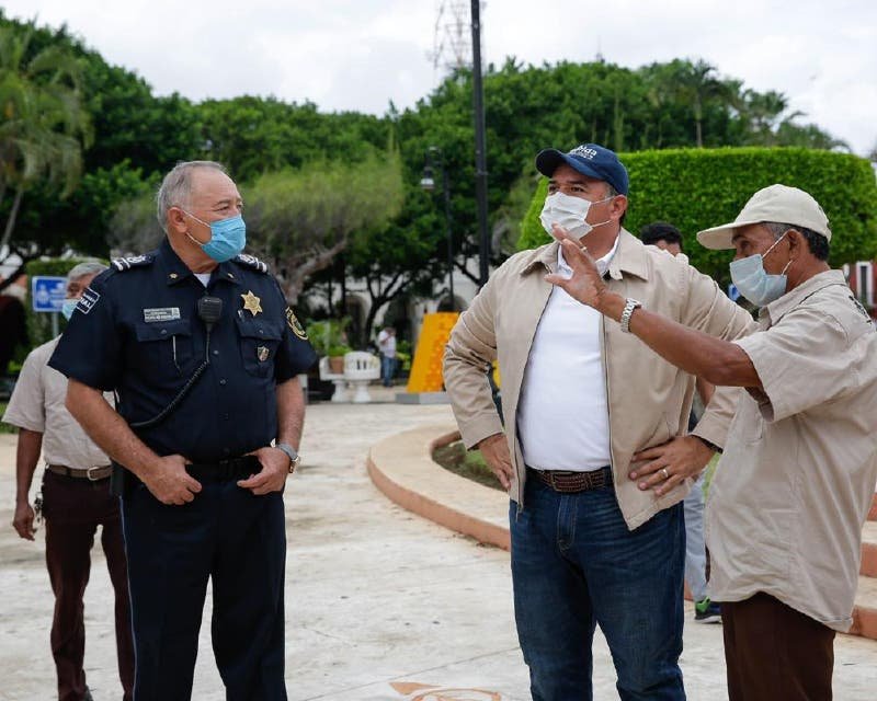Acompañado del director de la Policía Municipal, Mario Arturo Romero Escalante, y de Francisco Sáenz Catzín, secretario general de la Unión de Aseadores de Calzado de Mérida, Barrera Concha recordó que la Plaza Grande fue cerrada el 5 de abril a causa de la pandemia. Recalcó que ahora se reabre con todas las medidas de prevención necesarias para evitar riesgos de contagio de coronavirus.