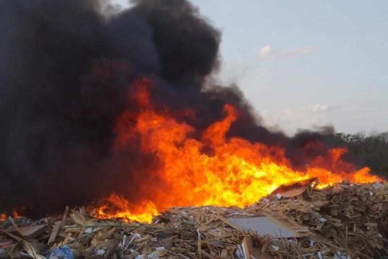 Los cuerpos de seguridad, protección civil y bomberos de la Secretaría estatal de Seguridad Pública se movilizaron para sofocar un fuerte incendio se registró en el relleno sanitario “Sana” de Kanasín.
