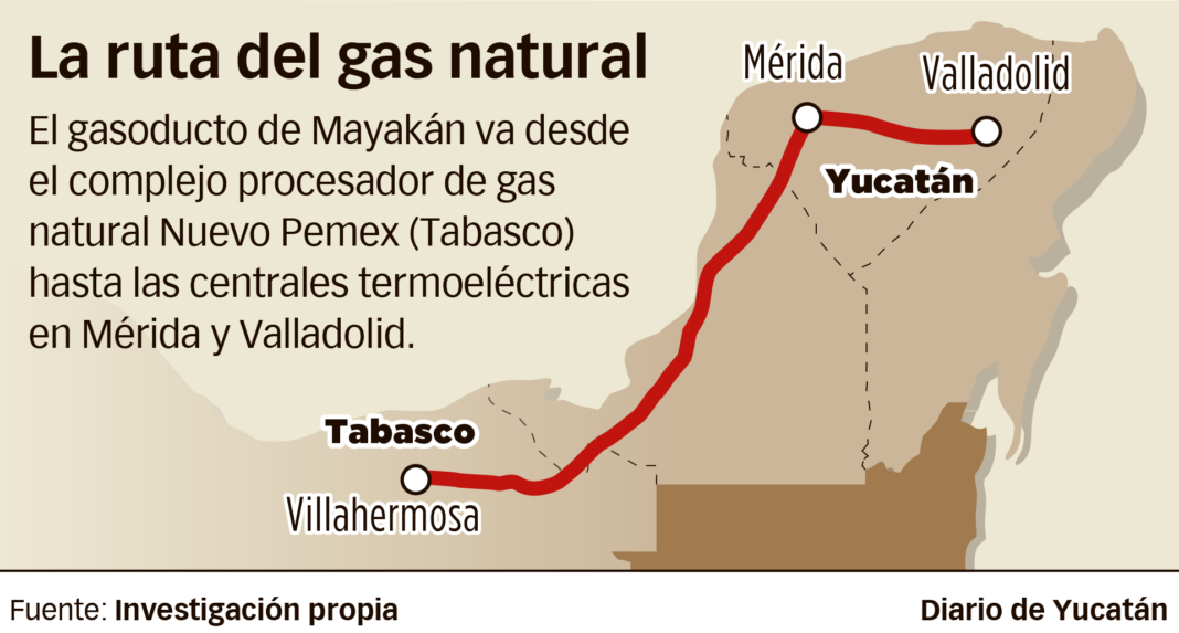 El gas llega a Yucatán por medio del gasoducto Mayakán de la compañía francesa Engie México. El vicepresidente de Distribución y Transporte de Gas Natural de la empresa, Álvaro Corona Aranda, manifestó que tienen capacidad para transportar 250 millones diarios.